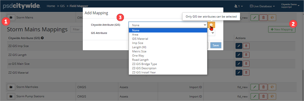 To map GIS fields to CW GIS Attributes: