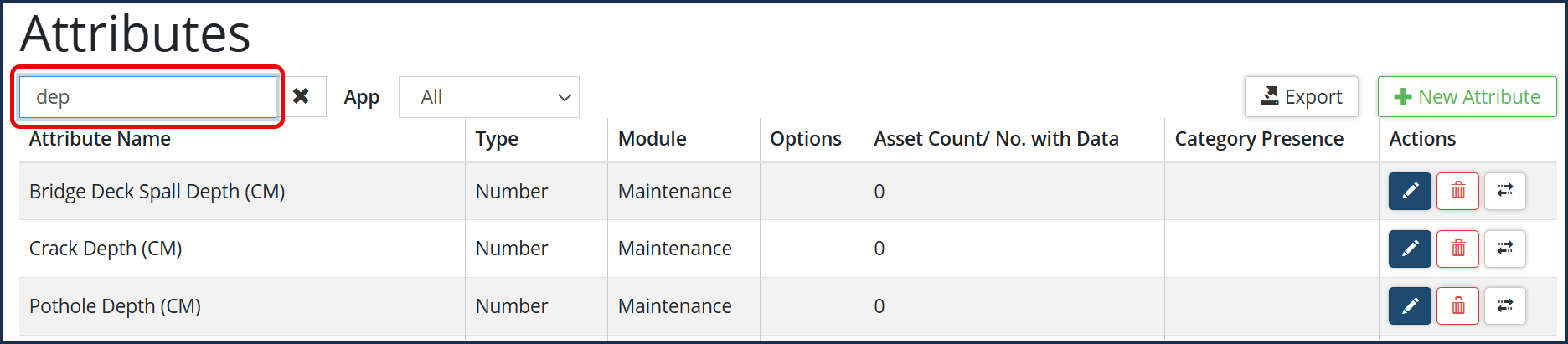 Module The module(s) using the attribute: Assets, Maintenance, or All.