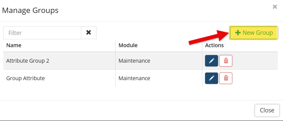 2. Click on Manage Groups and +New Group button to Add a new Name to the Manage Groups window.