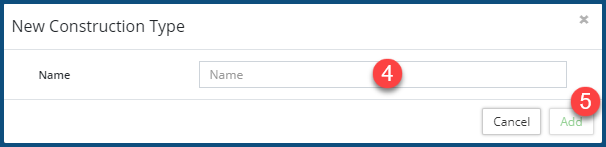 - Provide a Name ❹ for the new construction type.