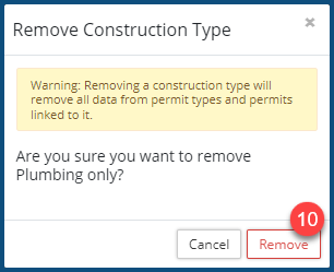 - Click on Remove ❿ to delete the construction type.