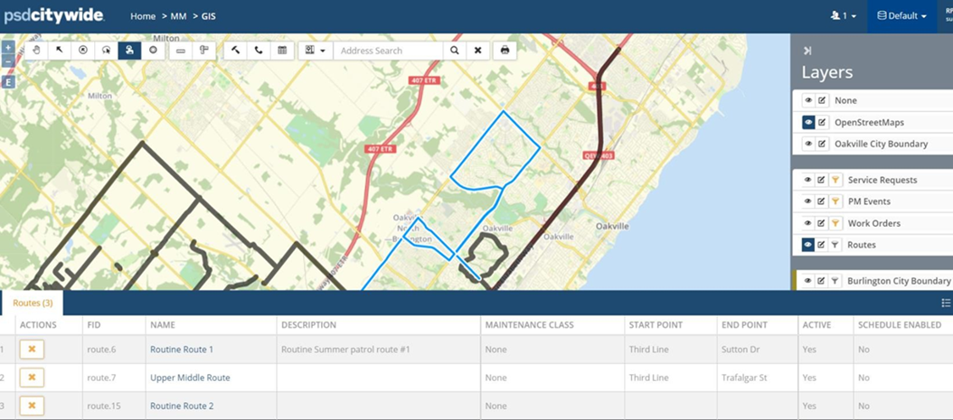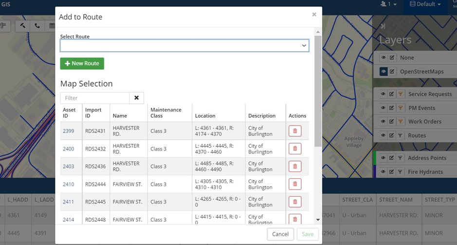 Routes can be created from the GIS Viewer or Maintenance-GIS.