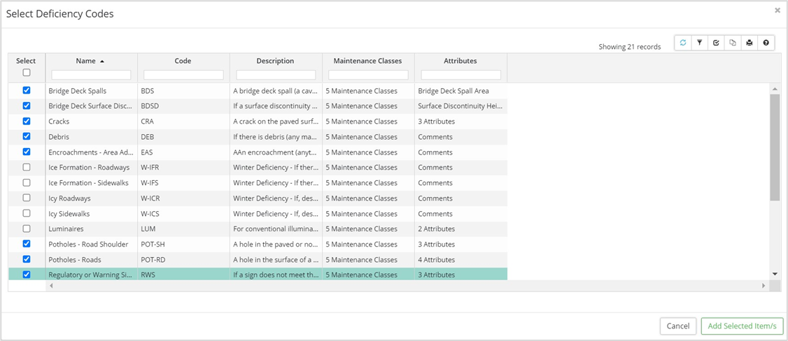 - Select applicable Deficiency Codes in the Resources Click Add Selected Items.