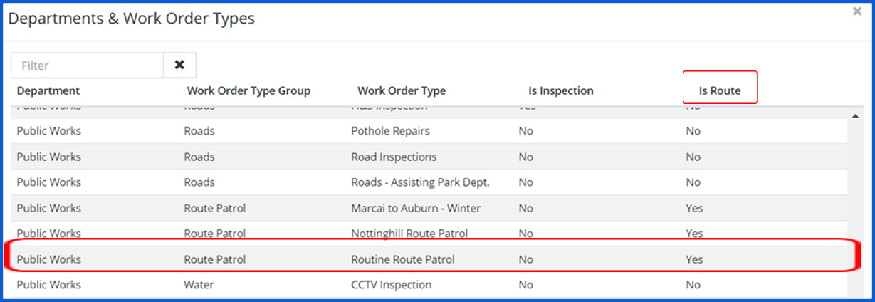 - A Route-WOT will have a Yes under the column Is Route as a result of the Route toggle turned on during the configuration of the WOT.