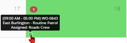 2. In the Month view, WOs are represented with a dot (i.e., ). Hover over the dot to see details and click to edit as needed.