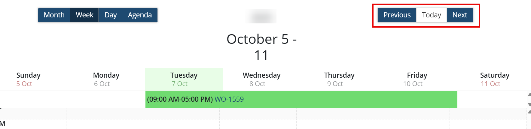 3. In the Week view, it shows the current week. You are able to navigate to a view of the previous week as well as to the following week.