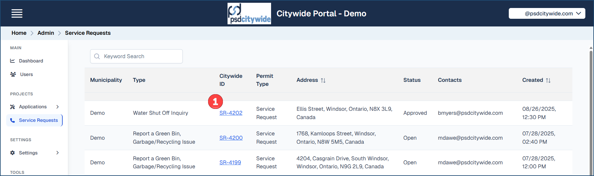The sole difference is that the items in the Citywide ID column refer to Service Requests ❶.