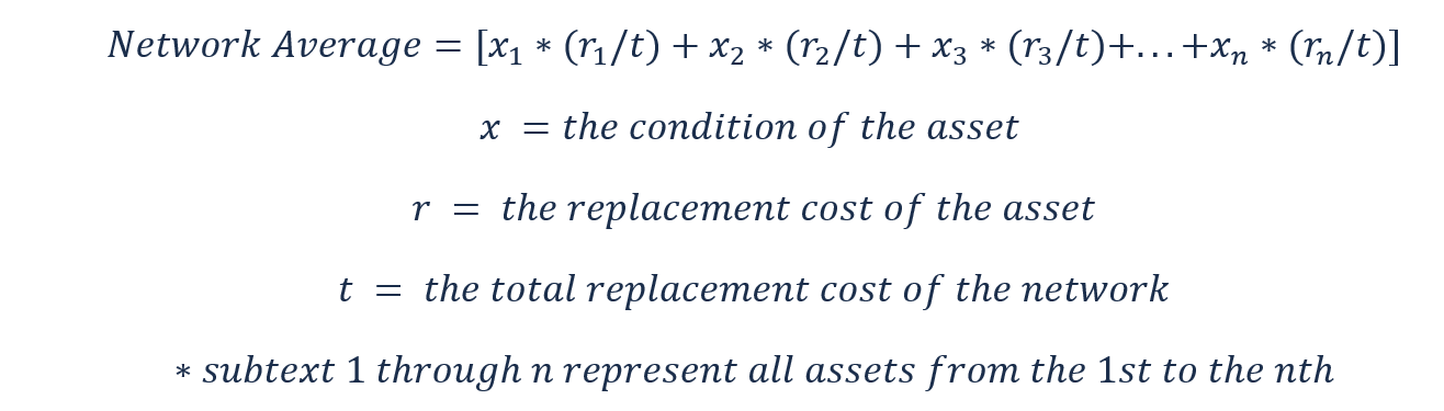 Each normalized condition increase is multiplied by the ratio between the asset’s replacement cost to the total replacement cost of assets in the Scenario.