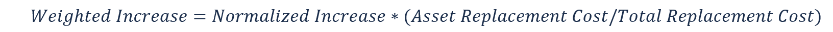 Each normalized condition increase is multiplied by the ratio between the asset’s replacement cost to the total replacement cost of assets in the Scenario.