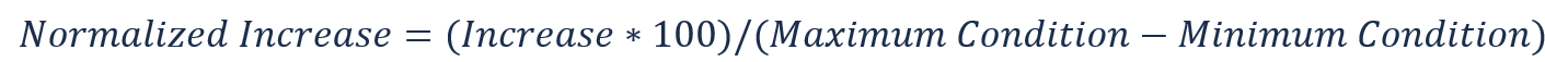 These condition increases are normalized to a range of 0 to 100 based on their max condition.