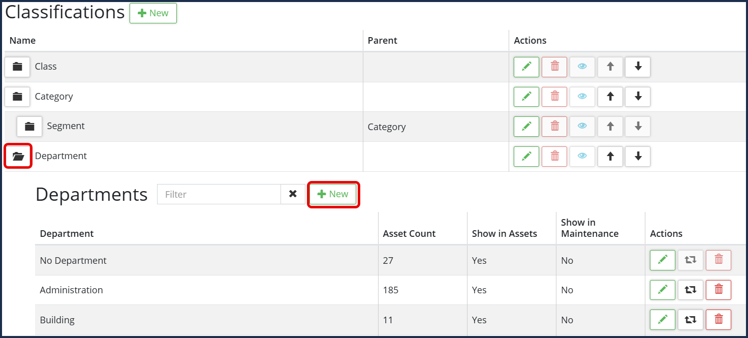 Create/add department classifications to indicate what department assets belong to. This allows users to filter assets by department on the grid as well as on reports within Citywide.