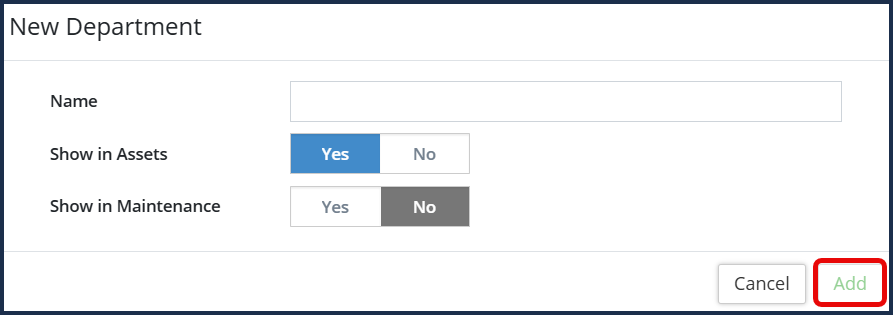3. Toggle Yes or No to which module this Department should show in (Assets and/or Maintenance)