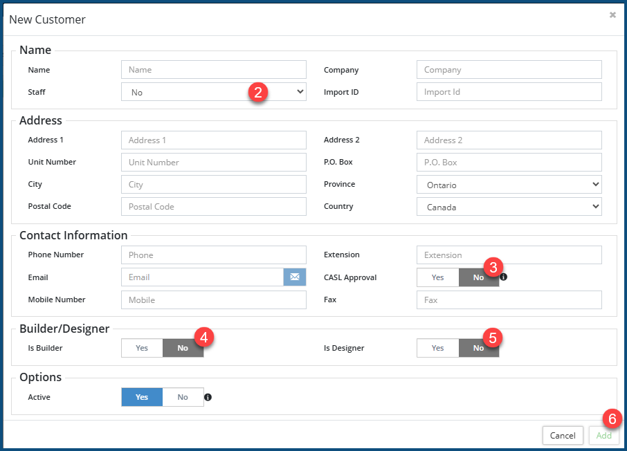 3. CASL Approved : Select Yes if this customer has provided consent to receive unsolicited emails from your organization.; No, if not. (CASL, which stands for "Canadian Anti-Spam Legislation," involves passage of nation-wide legislation in Canada.)