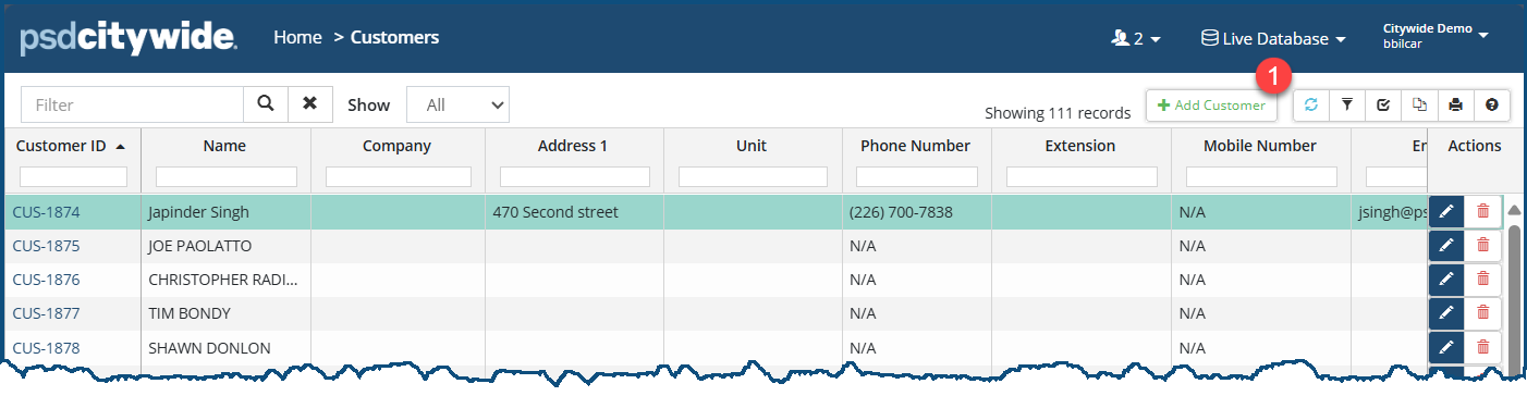 Customers and Contacts are the same records, containing the same fields - they are referenced differently in the Citywide modules. "Customer" is used in the Maintenance module, whereas "Contact" is used in the Permitting module, where a contact can be assigned to various roles: an applicant, an owner, builder, etc. Thus, while the icon here says "Customers," both customers and contacts can be added here.