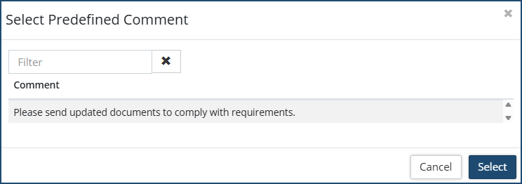3. Enter Comments  and/or select Predefined Comments  .