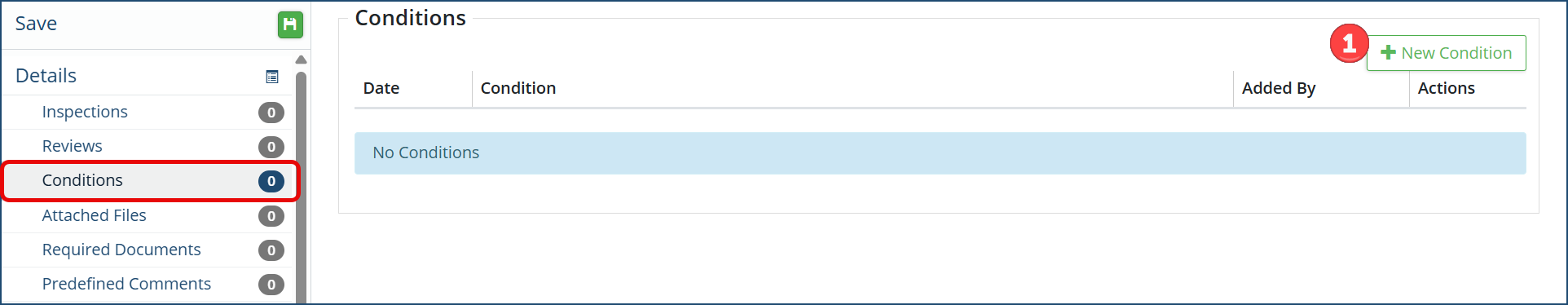 To be used when specific predefined conditions are applicable to the licence type. Setting up conditions in the licence type will allow Citywide users to include condition details on the application submitted by the applicant.