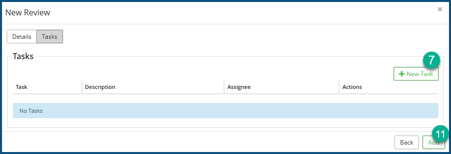 11. Click on  Add   when all the tasks for the Review have been added.