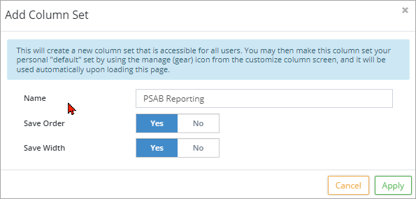 2. Ensure the correct column set is selected in the Column Set dropdown field