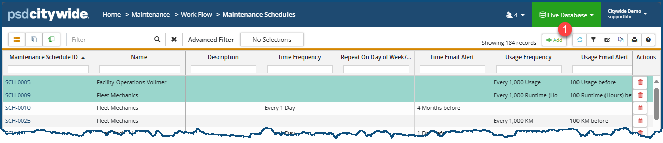 - Home 🢡 Maintenance 🢡 Work Flow 🢡 Maintenance Schedules.