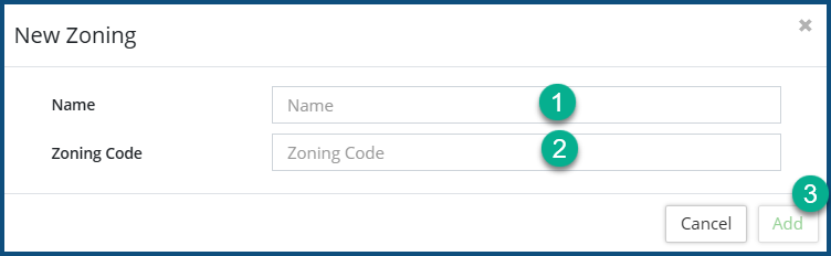 - Click +New Zoning ❶. The New Zoning dialog box appears: