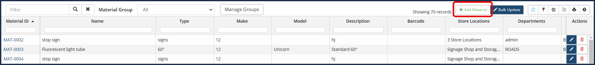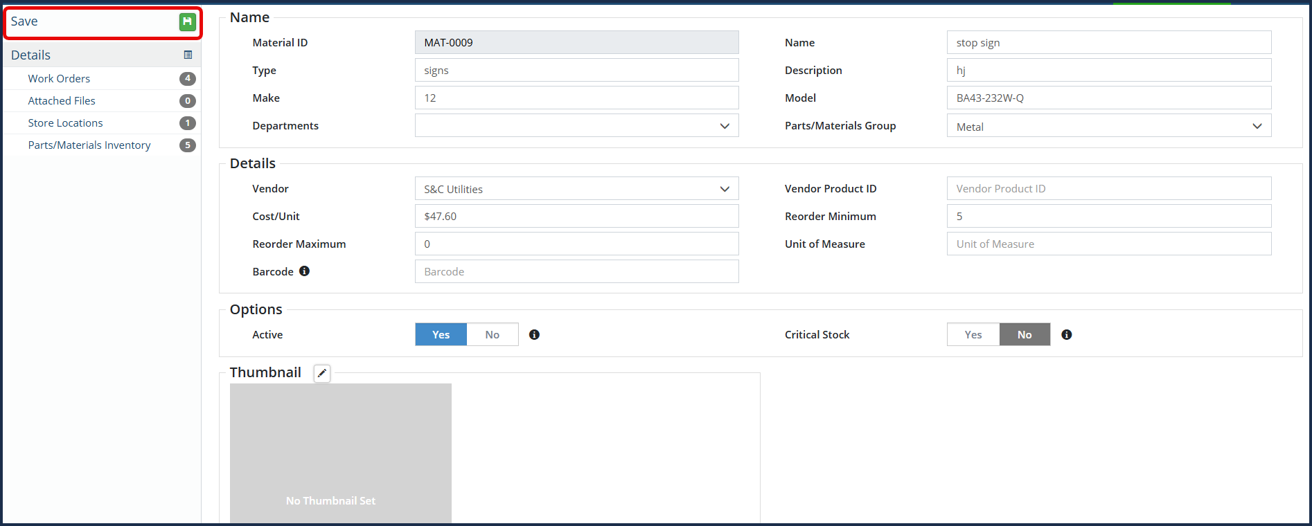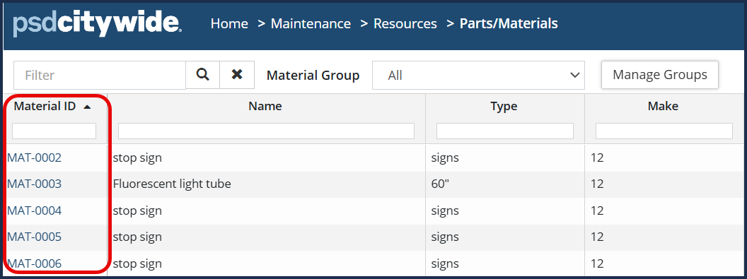 1. Navigate to Maintenance > Resources > Parts/Materials