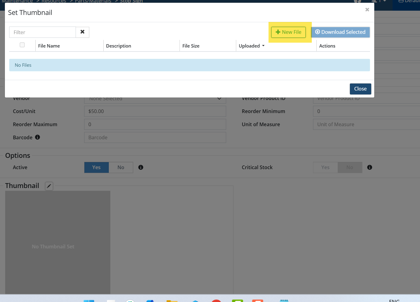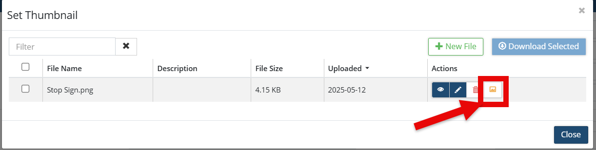 4. Add a Thumbnail by clicking on the Edit button in the Thumbnail section and add a New File within the Set Thumbnail window.