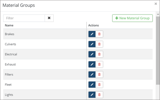 Create Material Groups to organize similar material items into groups for filtering purposes.