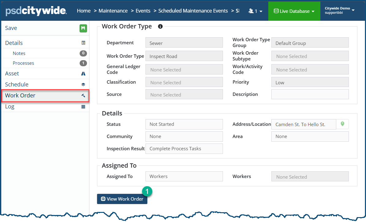 Click on View Work Order ❶ to make changes to the the work order.