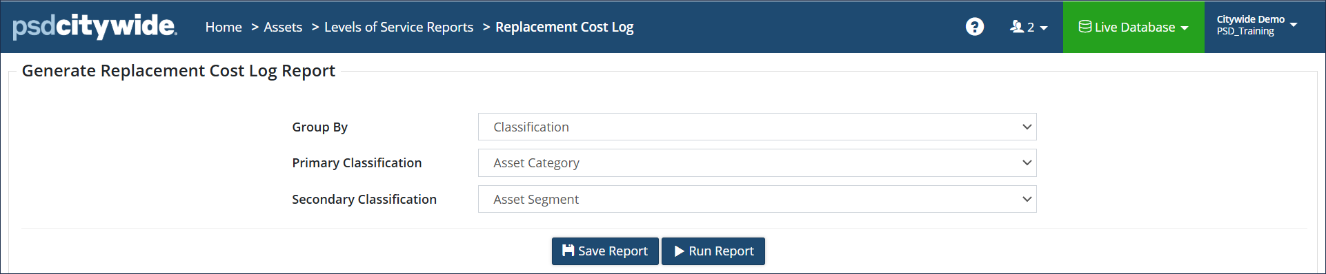 The Replacement Cost Log Report is a multi-year report showing the most recently archived Replacement Costs in each year along with their date.