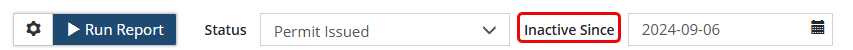 Inactivity (applies to Building Permits only) This report shows permit applications that have been inactive. When running this report, you can specify the date applications have been 'inactive since' to include in the report.