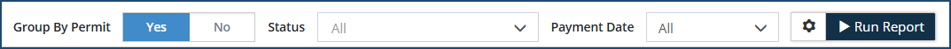 Payments This report shows the payment details from all permit applications as specified by the filters selected (ie. group by permit type, status or payment date).
