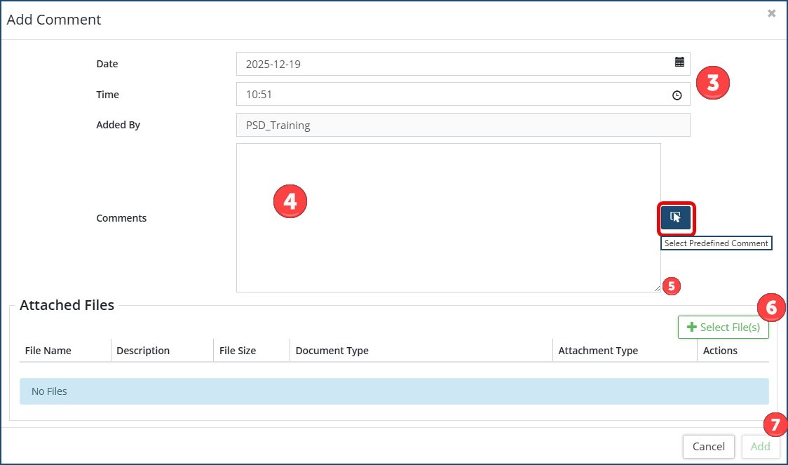 - Enter Comments ❹. The text box can be expanded to facilitate the full scope of your comments.