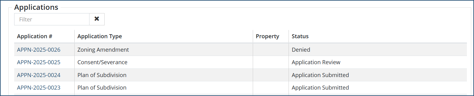 - Click on Applications to see a list of all the planning applications that involve this type or review and their current status: