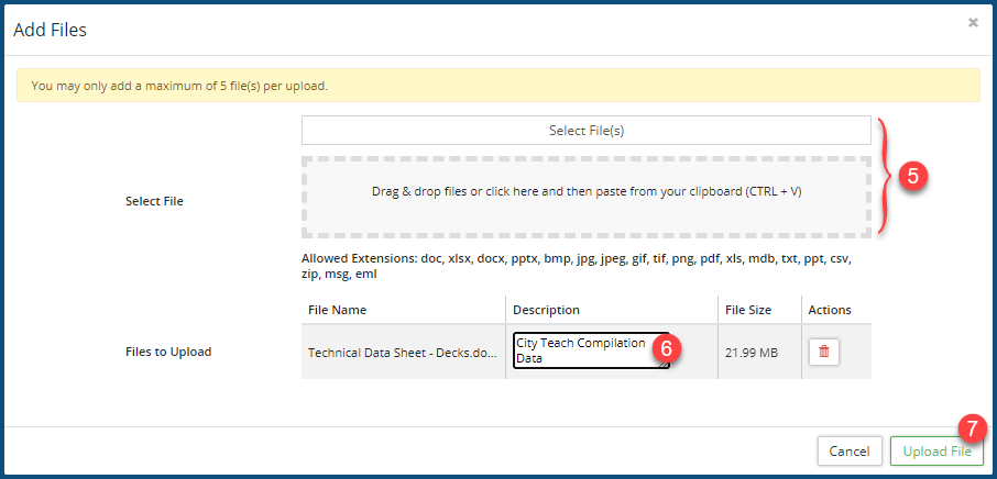 - Click Upload File ❼.