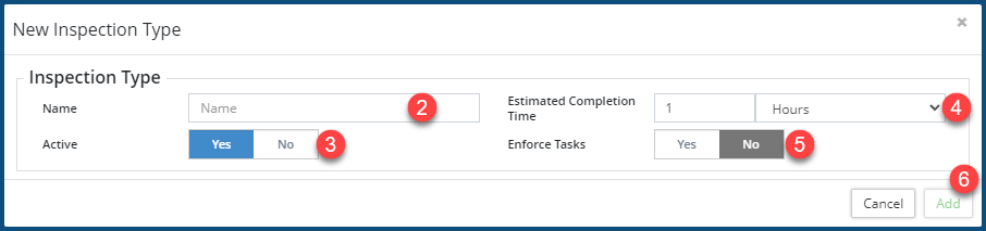 - Enter a Name ❷ for the Inspection Type.