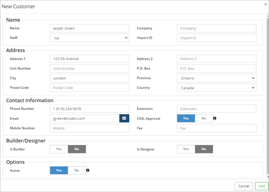In accordance with Canada’s Anti-Spam Legislation (CASL), any customer that is set to receive system generated emails via the built-in feature SR follow up messages, must have the CASL Approval toggle set to Yes for that Customer.