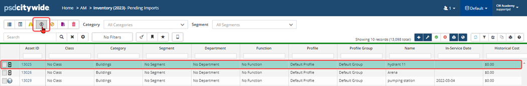 Assets created in the field and synced with Citywide will be moved to Pending Imports where they remain pending until asset information is added and the import is approved.