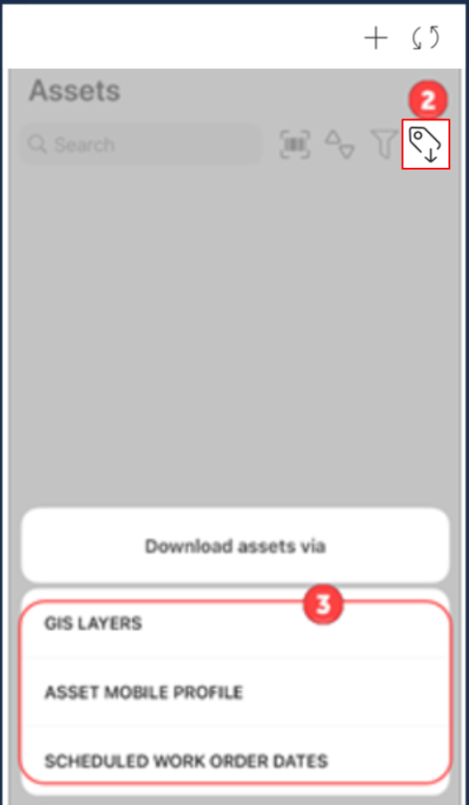 4. Users can download assets based on GIS layers, a mobile profile, or scheduled work orders.  The same download button is also available in the map view accessed from the home screen.