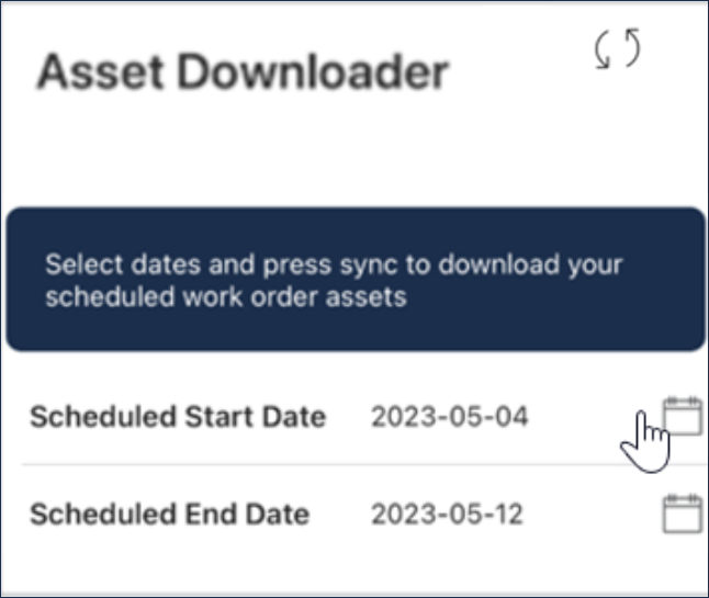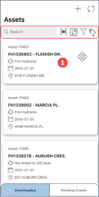 1. Tap Sync    in the top right corner to download the assets.  Once the assets have been downloaded, they can be viewed and modified within the mobile app.