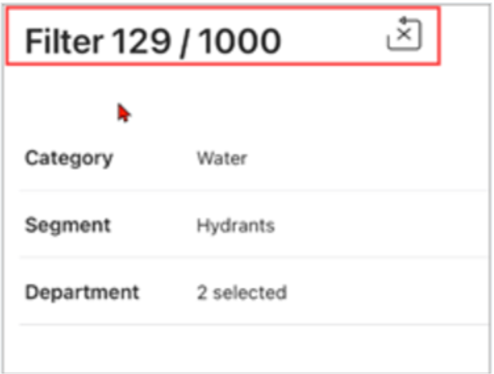 3. Click Apply. The number of assets within the filtered list displays at the top (i.e., 129/1000).  Close the filter screen to work with the filtered assets.