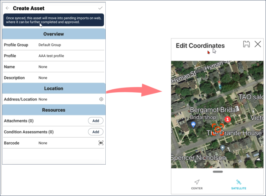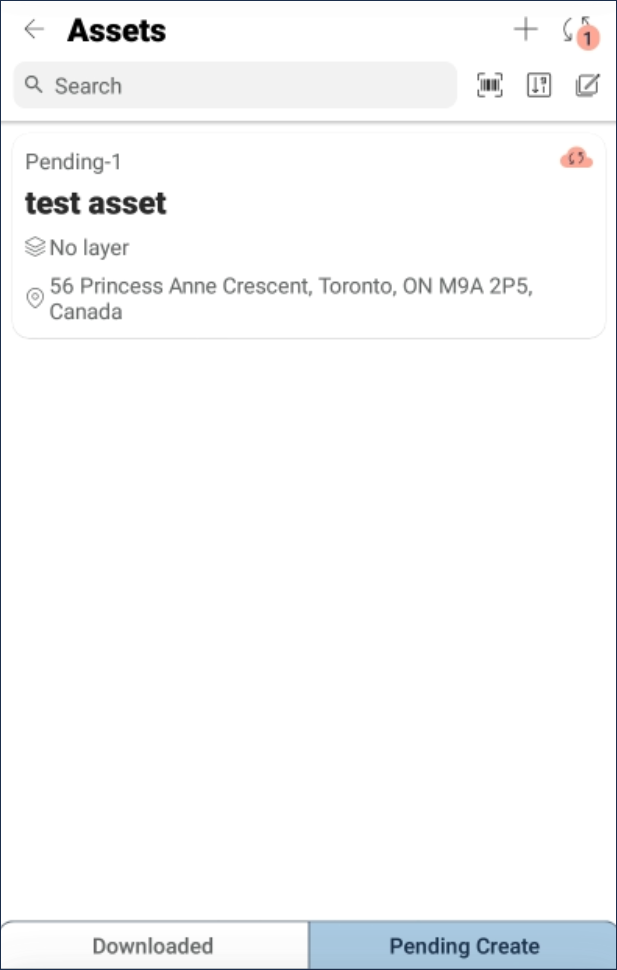 12. An asset card will display in the Pending Create view - the asset will remain pending until synced.